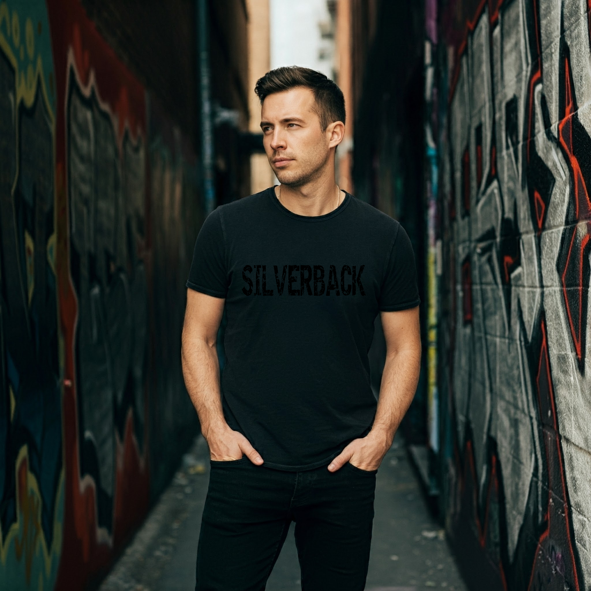 Rock a bold look with Silverback's Blackout Lettering tee. Made from 100% cotton, this casual fit shirt features black on black lettering for a sleek, understated style. Perfect for any casual occasion, stand out in black with Silverback.